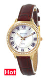 The Ladies Watch features a Mother Of Pearl dial. housed in a Gold case that radiates classic charm. The Croco leather band in Brown adds a touch of sophistication while ensuring durability and comfort. It fastens securely with a Pin Buckle clasp, providing a reliable fit for any wrist size. This timepiece blends functionality with elegance, making it a perfect accessory for both everyday wear and special occasions.