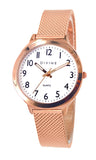 The Ladies Watch features a White dial. housed in a Rose case that radiates classic charm. The Steel band in Rose adds a touch of sophistication while ensuring durability and comfort. This timepiece blends functionality with elegance, making it a perfect accessory for both everyday wear and special occasions.