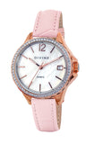 The Ladies Watch features a Mother Of Pearl dial. housed in a Rose case that radiates classic charm. The Croco leather band in Light Pink adds a touch of sophistication while ensuring durability and comfort. It fastens securely with a Pin Buckle clasp, providing a reliable fit for any wrist size. Additionally, the watch features a Date function to keep you on schedule. This timepiece blends functionality with elegance, making it a perfect accessory for both everyday wear and special occasions.