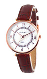 The Ladies Watch features a Mother Of Pearl dial. housed in a Rose case that radiates classic charm. The Croco leather band in Brown adds a touch of sophistication while ensuring durability and comfort. It fastens securely with a Pin Buckle clasp, providing a reliable fit for any wrist size. This timepiece blends functionality with elegance, making it a perfect accessory for both everyday wear and special occasions.