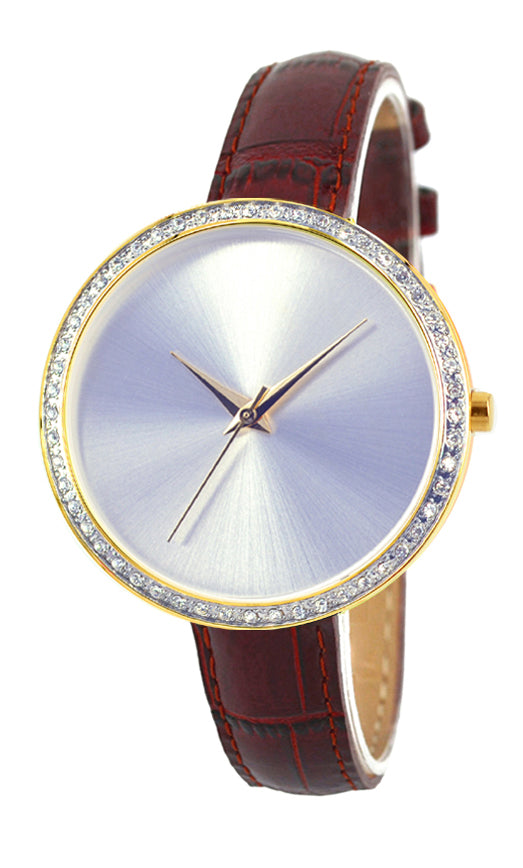The Ladies Watch features a Silver dial. housed in a Gold case that radiates classic charm. The Croco leather band in Brown adds a touch of sophistication while ensuring durability and comfort. It fastens securely with a Pin Buckle clasp, providing a reliable fit for any wrist size. This timepiece blends functionality with elegance, making it a perfect accessory for both everyday wear and special occasions.
