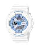 From Baby-G, the casual watch for today's active women, comes a new Beach Colour Series of pastel coloured models in the image of seashells and other marine scenes. Choose from among three different models: the BGA180 with a Tide Graph function for surfers and other marine sports lover, the BGA190 that simultaneously shows the current time in two times zones, and the mannish the design BA110. The blue models feature refreshing pate; blue colouring in the image of the summer ocean, while the pink models have pastel pink colouring that recall the image of seashells reflecting the sun off a beach. This lineup provides a rich collection of variations from which to choose.