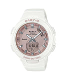 Introducing a new Step Tracker model with Smartphone Linking (Bluetooth), these watches are designed and engineered to help support daily workouts and training. With the BABY-G Connected App, you can now simplify the management of your daily activity logs and configuration exercise settings. Supported phone-based operations include configuration settings for calorie calculations, and step trargets, creation of programmable timer combinations for interval training and other applications.Phone linking also enables auto time adjustments and other timekeeping operations. It's the perfect choice for women who wish to make health management and fitness an intergral part of their daily lives.