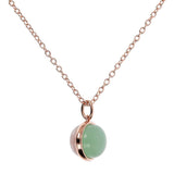 New in the Alba collection, a roll chain with a pendant featuring a choice of semi-precious stones. Designed to match the bracelet and ring with coordinated natural stones in pastel hues, this simple 18KT rose gold plated Rose Gold necklace offers a linear design and the pleasure of one of the most refined cuts, the smooth and perfect cabochon - the result of the skilled work and craftsmanship of our artisans. The ethereal and iridescent charm of milky white moonstone, the striated and magnetic shades of labradorite, with hints of green and electric blue, but also the classic rose quartz, jade and chalcedony pastels: choose your stone, match this necklace with its own coordinated ring and bracelet and create your own set.