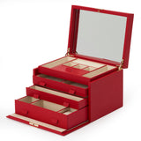 Charming and sophisticated, Palermo takes cues from its namesake city on the side of a mountain by the sea. Sumptuous red leather and chic gold recessed locks, Palermo Large jewellery Box displays and organises your jewellery in style. Includes LusterLoc anti-tarnish lining and lock & key with gold finish.