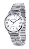 Divine Classic ladies' silver-tone watch features a white dial with Arabic numbers and dates.
