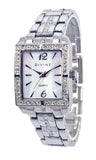 Band is silver bracelet with crystals and self-adjustable links.