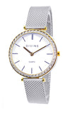 Divine Classic ladies gold two tone watch with white dial features sparkling round crystals on the bezel.