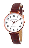 Divine Classic ladies rose tone watch features white dial with Arabic numbers.
