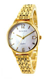 Band is gold bracelet with self-adjustable links.