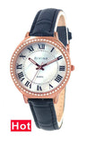 The Ladies Watch features a Mother Of Pearl dial. housed in a Rose case that radiates classic charm. The Croco leather band in Black adds a touch of sophistication while ensuring durability and comfort. It fastens securely with a Pin Buckle clasp, providing a reliable fit for any wrist size. This timepiece blends functionality with elegance, making it a perfect accessory for both everyday wear and special occasions.