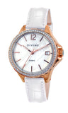 The Ladies Watch features a Mother Of Pearl dial. housed in a Rose case that radiates classic charm. The Croco leather band in White adds a touch of sophistication while ensuring durability and comfort. It fastens securely with a Pin Buckle clasp, providing a reliable fit for any wrist size. Additionally, the watch features a Date function to keep you on schedule. This timepiece blends functionality with elegance, making it a perfect accessory for both everyday wear and special occasions.