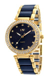 Band is black polycarbonate set in the middle of gold bracelet with self-adjustable links.