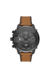 This 48mm Griffed watch features a gray sunray dial with stick indexes, chronograph movement and brown leather strap.