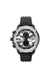 This 48mm Griffed watch features a silver sunray dial with stick indexes, chronograph movement and black leather strap.