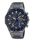 Inspired by the luxury sports cars in TOM’S line of complete vehicles, this special collaborative design says pure luxe all the way. Gorgeous gold-colour accents flash on the second hand, on the racing team logo on the carbon dial, and on the indicator hand of the inset dial at the 6 o’clock position. The case back and clasp are engraved with TOM’S and EDIFICE logos, as well.