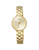 Delicately graceful, this magnificent timepiece represents spectacular craftsmanship combined with functional technology. Highlighting this, the rich gold tones of this watch are delicately contrasted with subtly frosted moon-glazed sapphire glass to create an object of desire for women with discerning tastes. Showcasing practicality in a beautiful timepiece, it features a push button buckle, low charge indicator, and Eco-Drive technology is utilised. This harnesses power from light, so batteries are never required making it both lighter and environmentally sustainable.