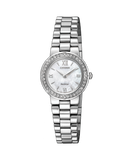 True class defies gaudy displays of excess� a notion exemplified by this refined piece from the Swarovski collection. Crafted for everyday use with hardy stainless steel, it features a divine mother of pearl dial accentuated by Swarovski elements covering the bezel and sophisticated silver tones of the case and band. The attraction extends beyond looks, with the performance of this watch driven by light harnessing Eco-Drive technology for energy and 12 months worth of power kept in reserve.