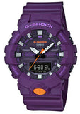 The base model is the new mid-size GA-800 that combines a rugged design in a compact configuration. The GA-800 is an analog-digital combination timepiece that features an independently driven second hand and styling that allows enhanced readability.