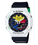 We start with the GAE-2100 and its ever-popular octagonal bezel, then add the colour and quirk of a pop culture puzzle that grew into a global sensation. Dial, band loop, and buckle are accented in iconic Rubik’s Cube colours for a G-SHOCK with a uniquely whimsical mood. Pop back and forth between the interchangeable white and black bezels to match your mood and style.