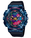 Opt for the magical colorful urban nightscape of the GM-110 and its ever-popular digital-analog combination featuring oversized round case, metal bezel in blue ion plating, dial components in a rainbow vapor deposition finish, and color LCD display.