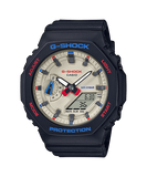 Touches of red and blue on the bezel, indexes, and watch hands accent the neutral black and white color scheme, ready for everything from urban to winter resort fashion. The classic G-SHOCK look in a smaller, thinner profile will suit your style, no matter the occasion.