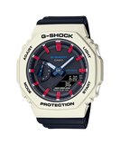Touches of red and blue on the bezel, indexes, and watch hands accent the neutral black and white color scheme, ready for everything from urban to winter resort fashion. The classic G-SHOCK look in a smaller, thinner profile will suit your style, no matter the occasion.