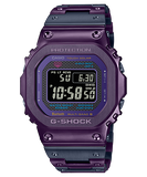The iconic square face gets a new look with a stainless steel case in purple, the latest addition to Casio color ion plating. Alternating purple and blue-gray ion plating on the stainless steel watchband evokes the shades of the urban skyline at dusk. Add in purple accents on the dial combined with the negative mode LCD for a sophisticated, entirely original design.