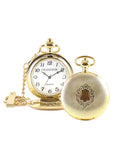 Gent gold pocket watch with Arabic numbers dial and chain. This comes with gift box.
