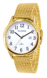 Grandeur Classic gold gent watch features white dial with Arabic numbers and date.