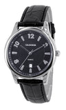 Grandeur Classic silver gent watch features black dial with Arabic numbers and date.