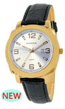 Grandeur classic and extra largeĀ gold gent watch features silver dial with mesh pattern on the bezel with Arabic numbers and date.