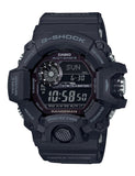 The basic black coloring of this model further enhances the rough and tough look of the resin material and the MASTER OF G design. Base model is the RANGEMAN GW-9400 with a time stamp feature that lets you record the current time in memory with the touch of a button.