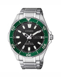 Stand out from the crowd with this striking automatic timepiece. Designed to make you feel invincible. Featuring a Super titanium bracelet with mineral glass and day/date. It is 5 times harder than stainless steel yet 40% lighter, making it resillent to the rigours of everyday wear. With an emerald green bezel and sleek black dial, this timepiece will turn heads wherever you go. This Automatic has a power reserve of 40 hours once entirely wound. It is a sophisticated expression of style. WR200 ISO 6425 approved for diving.