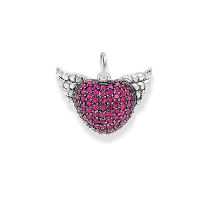 Wings of freedom. Made from 925 Sterling Silver, synthetic red Garnets and adorned with small blackened wings.