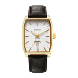 Titan Regalia Opulent White Dial Analogue with Day and Date Leather Strap Watch for Men